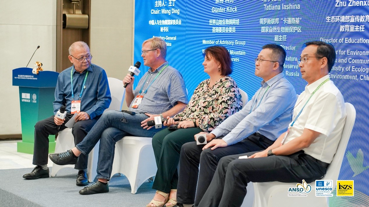During a panel discussion moderated by Professor WANG Ding, Secretary-General of MAB China, experts convened to explore multi-stakeholder support for the Initiative of International Cooperation on Nature Education and its role in fulfilling the UNESCO MAB Programme's vision. The panel, featuring experts spanning international protected areas and environmental agencies, underscored the unanimous consensus on strengthening transnational and cross-departmental cooperation to promote nature education from concept to implementation. The panelists included Dr. Günter Köck, member of the Advisory Group World Network of Mountain Biosphere Reserves, Ms. Tatiana Iashina, Deputy Director of Russia FSBI State Nature Biosphere Reserve "Katunskiy", Dr. ZHU Zhenxu, Director of the Education Office of Center for Environmental Education and Communications of Ministry of Ecology and Environment, and Mr. SUN Lijun, Deputy Director of China Three-river-source National Park Administration.