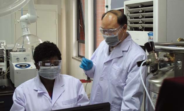 Anake in lab with her host at IPE, CAS Member Prof. ZHANG Suojiang. (Photo by SONG J.)