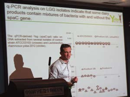 Dr. Wilbert Sybesma explains to the audience how to isolate probiotic bacteria from the environment. (Photo by SONG J.)