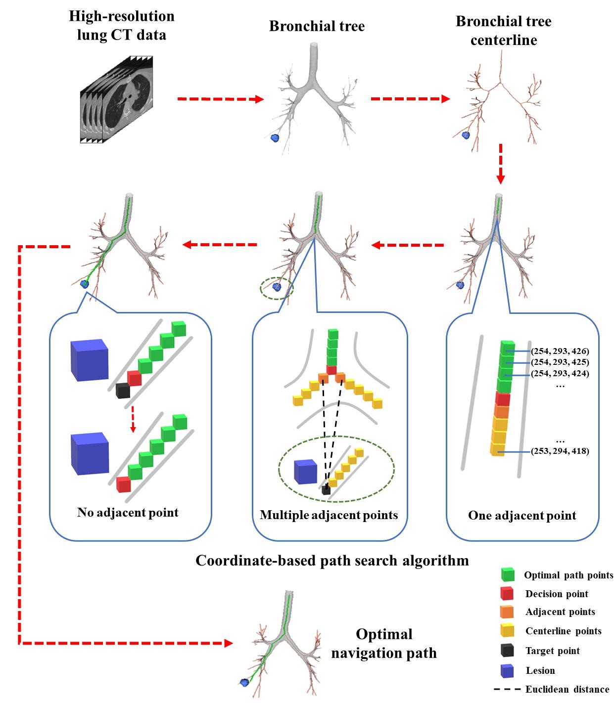 Lung cancer is the most common and deadly malignancy worldwide. Early diagnosis and treatment of lung cancer significantly increases the 5-year survival rate of patients. Bronchoscopy is the primary method for diagnosing and treating lung cancer. Traditional bronchoscopy has lower inspection efficiency. However, Electromagnetic Navigation Bronchoscope (ENB), which uses electromagnetic navigation technology and path-finding algorithms, can guide the bronchoscope in real time to quickly reach the lesion site for diagnosis and treatment. It is a novel technology that significantly improves the clinical efficiency of lung lesion diagnosis and treatment.