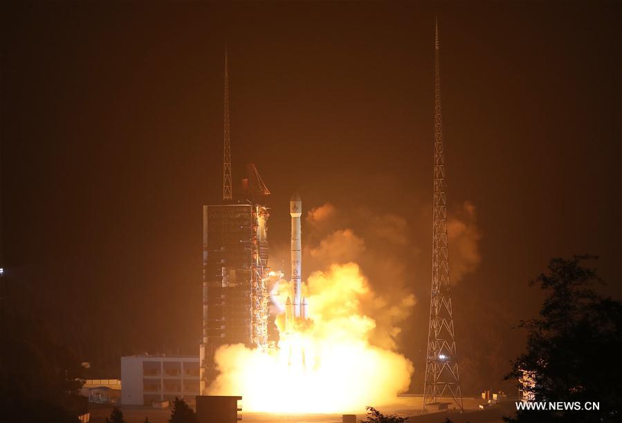 A Long March-3B rocket carrying the Fengyun-4 satellite blasts off from the launching pad at Xichang Satellite Launch Center, southwest China's Sichuan Province, Dec. 11, 2016. China launched the weather satellite at 12:11 a.m. Sunday, marking an upgrade of China's meteorological satellites in geostationary orbit. The Fengyun-4 satellite, the first of China's second-generation weather satellites in geostationary orbit to have been launched, is also the country's first quantitative remote-sensing satellite in high orbit. (Xinhua/Chen Jianli)