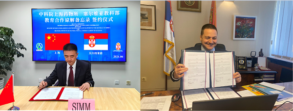 A signing ceremony via video conference was held on June 15, 2021, by the Shanghai Institute of Materia Medica (SIMM) of Chinese Academy of Sciences and the Ministry of Education, Science and Technological Development of Republic of Serbia (MPN). During the conference, the two sides signed an MOU on education cooperation, which will strengthen bilateral scientific and technological cooperation. Besides, they will work together to develop new drugs from natural products which will benefit human health.