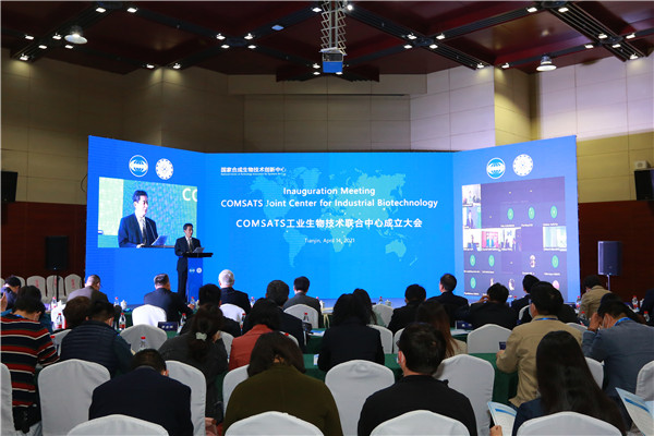 The Inauguration Meeting of the COMSATS Joint Center for Industrial Biotechnology (CCIB) was held in Tianjin on April 14, 2021. The CCIB is built by Tianjin Institute of Industrial Biotechnology (TIB) of the Chinese Academy of Sciences, and the Commission on Science and Technology for Sustainable Development in the South (COMSATS). Under the framework of the National Innovation Center for Synthetic Biotechnology (NC SynBio), it aims to promote the development of biotechnology and bioindustry in the member states and countries along the Belt and Road.