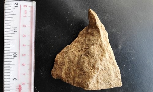 One of the stone tools excavated in Shangchen historical site in Northwest China's Shaanxi Province. It was chipped to this form by human ancestors 2.1 million years ago. Photo: courtesy of Zhu Zhaoyu