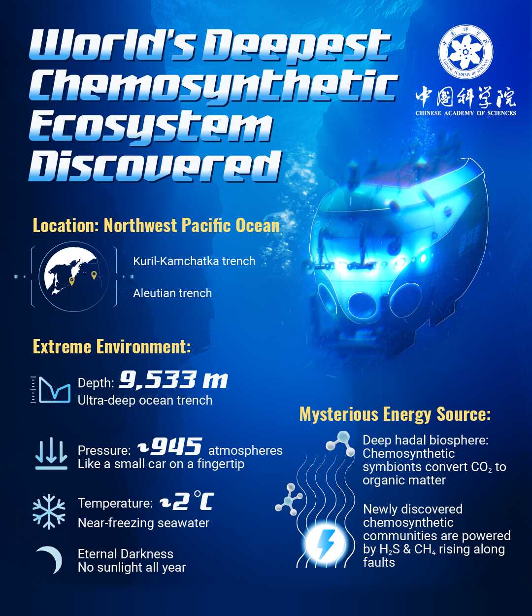 Led by the Institute of Deep-sea Science and Engineering (IDSSE), CAS, the Global Hadal Exploration Programme team has uncovered chemosynthetic communities thriving at an incredible 9,533 meters deep—the deepest ever recorded!