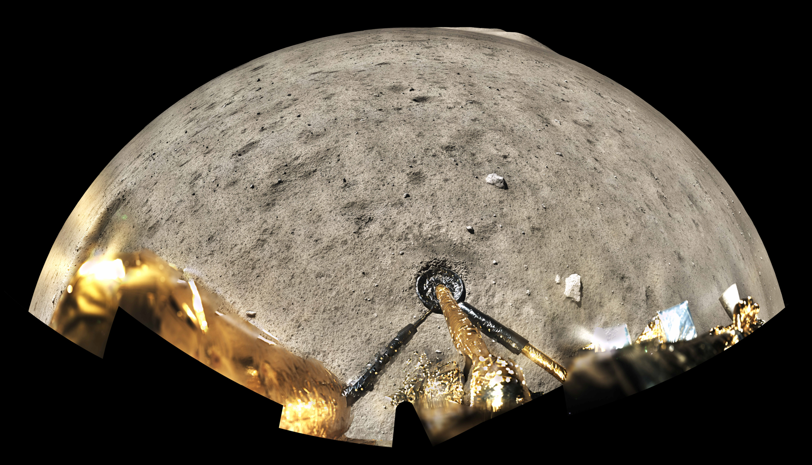 The panoramic image of the CE-5 landing site. (Image by CNSA/GRAS/NAOC)