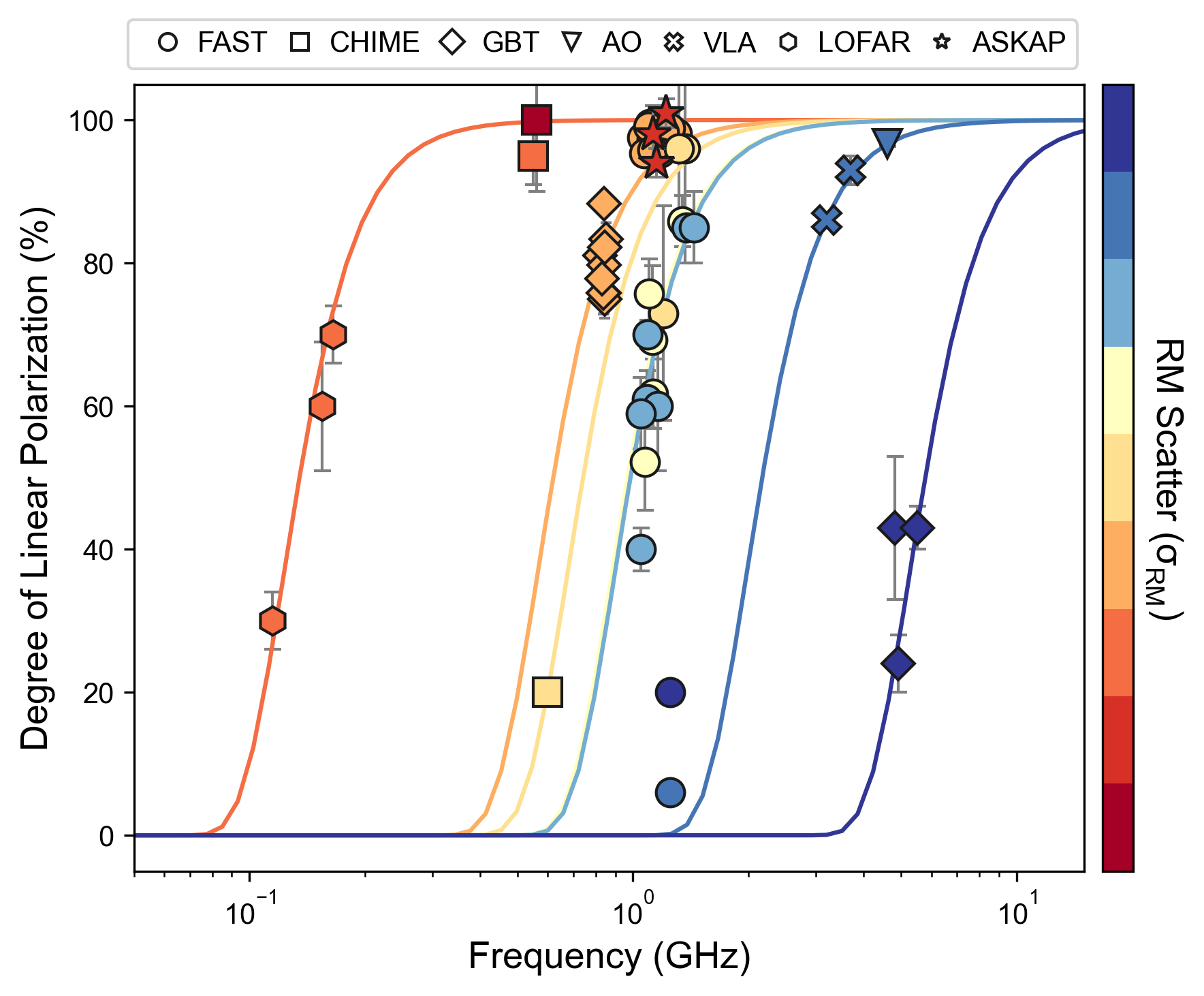 Such an effect is greater on photons/light waves of longer wavelength (lower frequency) and gives rise to the apparent discrepancies among telescopes. In particular, it explains why the polarization was not detected at FAST.