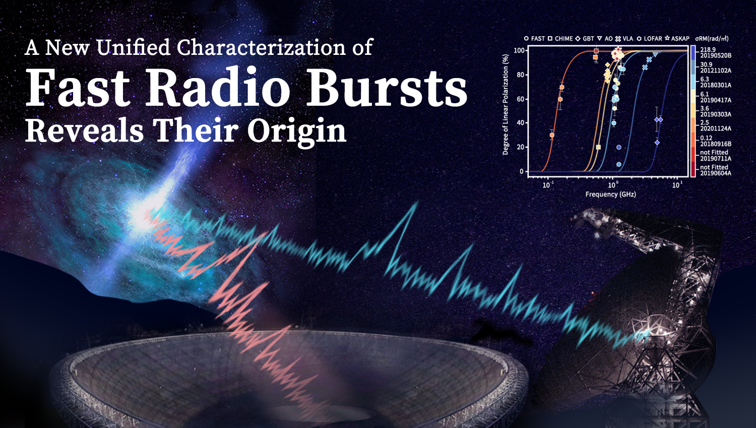 A research team led by Dr. LI Di from National Astronomical Observatories of Chinese Academy of Sciences (NAOC) has analyzed the polarization properties of five repeating FRB sources using the Five-hundred-meter Aperture Spherical radio Telescope (FAST) and the Robert C. Byrd Green Bank Telescope (GBT).