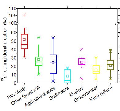 The results were published entitled "High nitrogen isotope fractionation of nitrate during denitrification in four forest soils and its implications for denitrification rate estimates" in Science of the Total Environment.
