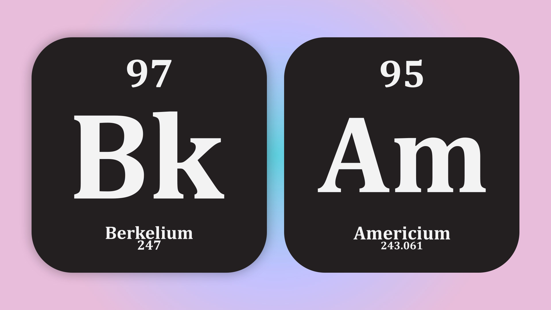 A graphic showing Berkelium and Americium from the Periodic Table. Chinese scientists have recently synthesized brand-new isotopes of these two elements: Berkelium-235 and Americium-231. Gong Zhe/CGTN