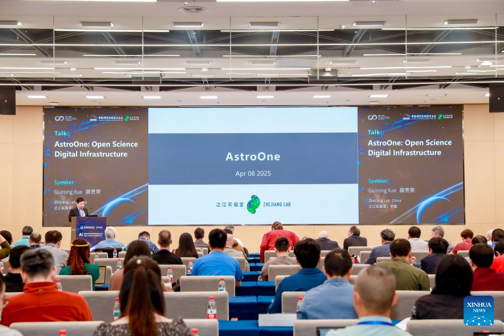 AstroOne, a foundational AI model for astronomy developed by China's National Astronomical Observatories (NAOC) and Zhejiang Lab, is announced to be open to researchers worldwide during the AI-Empowered Astronomy for Open Science conference in Hangzhou, east China's Zhejiang Province, April 8, 2025. (Xinhua)