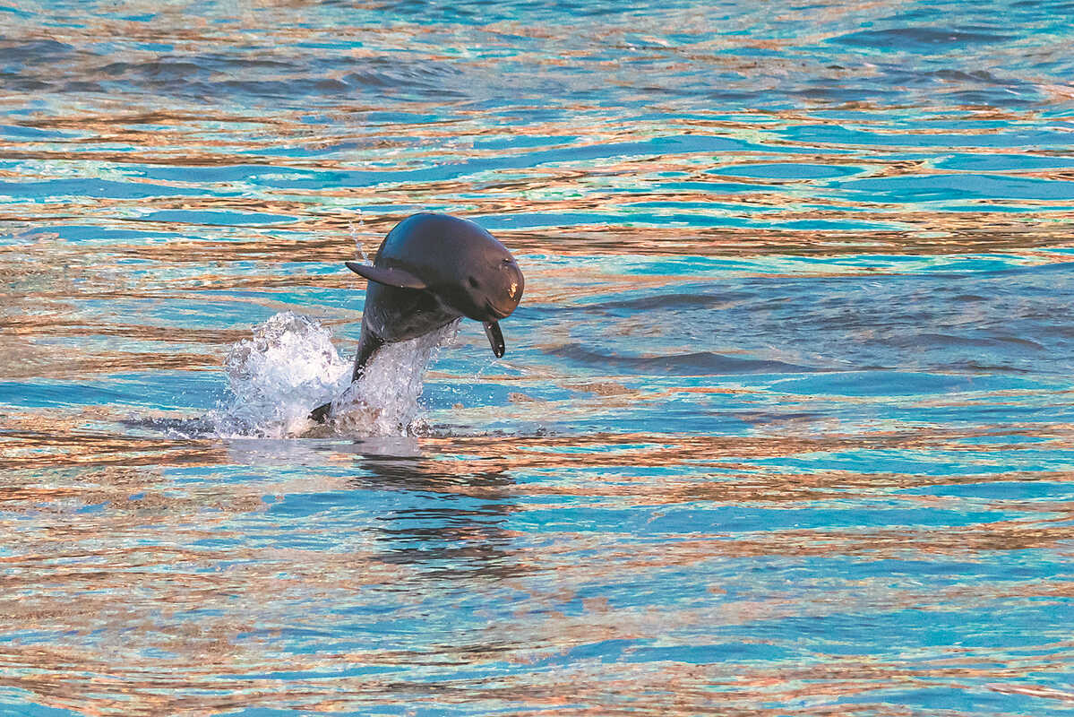 A Yangtze finless porpoise leaps out of the water in Yichang, Hubei province in 2020. YANG HE/CHINA DAILY