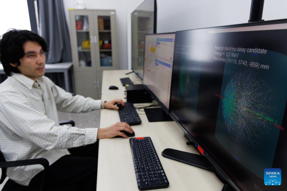 A researcher works at the control room of Jiangmen Underground Neutrino Observatory (JUNO) in Jiangmen, south China's Guangdong Province, Nov. 19, 2025. (Xinhua/Jin Liwang)