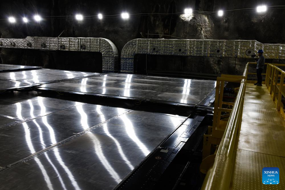 This photo taken on Nov. 18, 2025 shows muon detector arrays at Jiangmen Underground Neutrino Observatory (JUNO) in Jiangmen, south China's Guangdong Province. (Xinhua/Jin Liwang)
