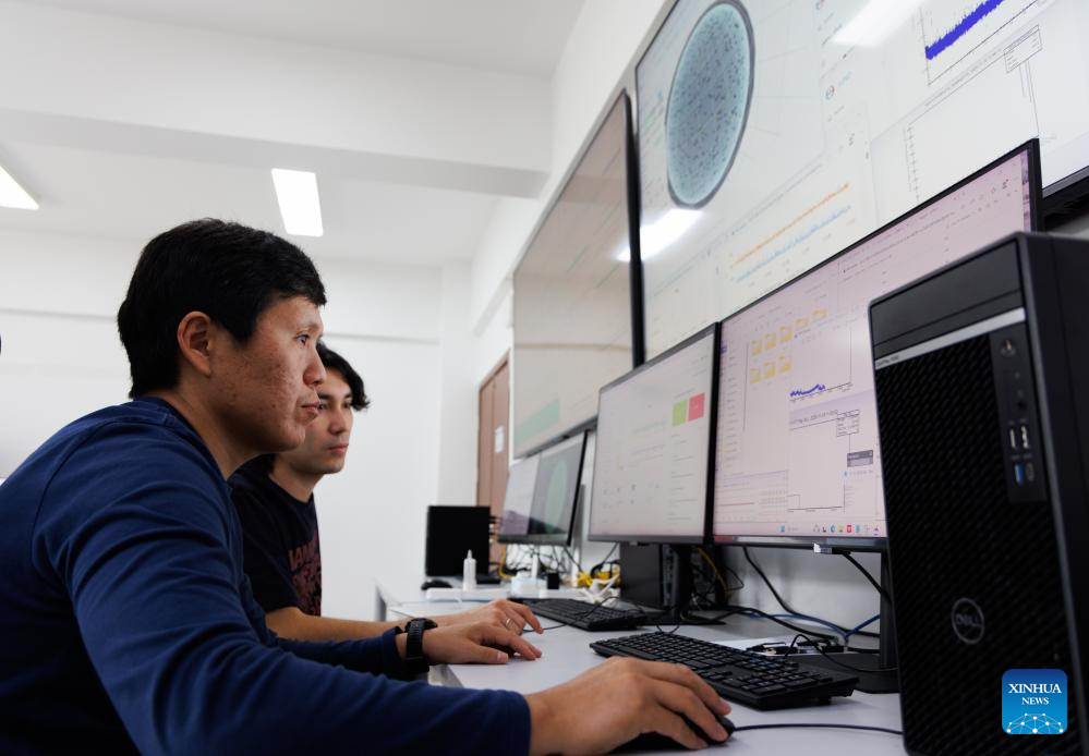 Researchers work at the control room of Jiangmen Underground Neutrino Observatory (JUNO) in Jiangmen, south China's Guangdong Province, Nov. 18, 2025. (Xinhua/Jin Liwang)
