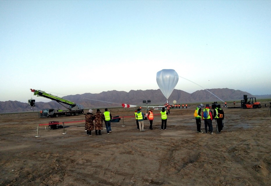 Scientists were about to release the high-altitude balloon at Qaidam in the early morning. (Image by ZHANG Jinqiang)