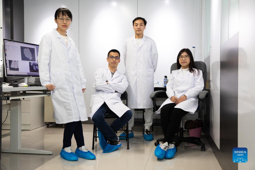 A research team of the Institute of Geology and Geophysics of the Chinese Academy of Sciences pose for a photo in Beijing, capital of China, Oct. 18, 2021. Chinese researchers have studied the lunar samples brought back by the Chang'e-5 mission and dated the youngest rock on the Moon at around 2 billion years in age, extending the "life" of lunar volcanism 800-900 million years longer than previously known. The study, conducted mainly by a research team at the Institute of Geology and Geophysics (IGG), Chinese Academy of Sciences (CAS), was presented in three Nature papers and published online Tuesday. (Xinhua/Jin Liwang)