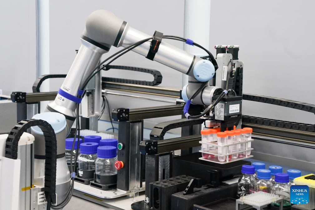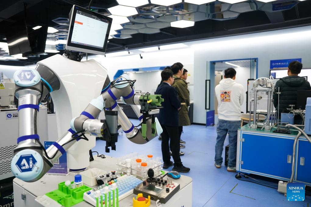 Researchers adjust robots at the state key laboratory of precision and intelligent chemistry of the University of Science and Technology of China (USTC) in Hefei, east China's Anhui Province, Nov. 24, 2025. (Xinhua/Du Yu)