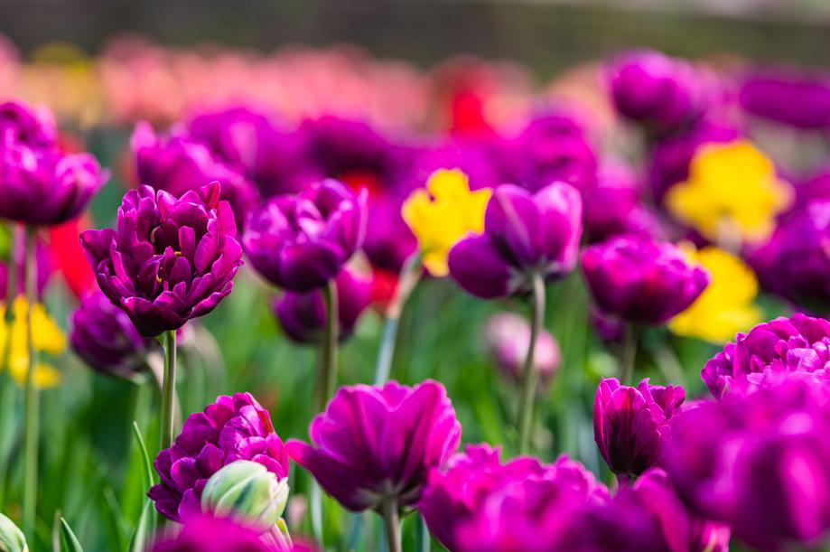 Nearly half the tulips are in full bloom now in an ocean of color.