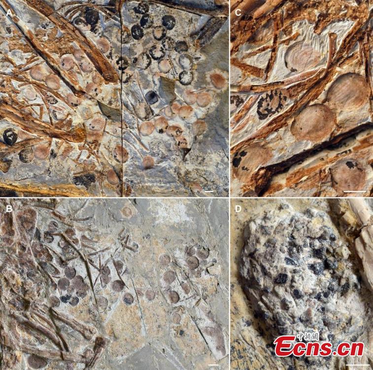 Photo shows seeds preserved in the abdominal area of selected Jeholornis prima specimens. (Photo provided to China News Service)