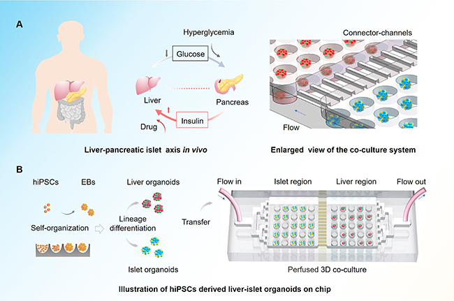 Schematic of hiPSCs derived multi-organoid-on-chip system to model human liver-pancreatic islet axis in vitro (Image by TAO Tingting)