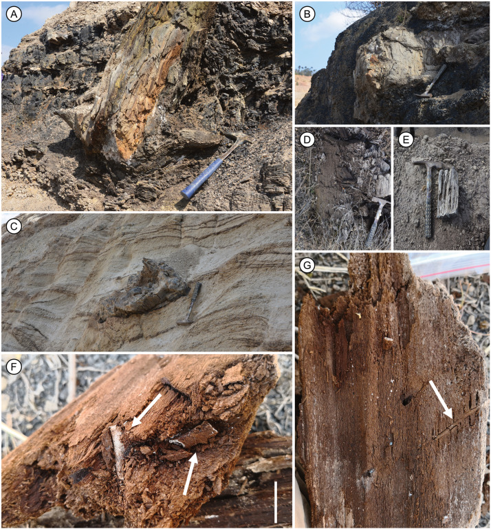 The Cupressaceae fossil tree stumps from the early Oligocene Lvhe coal mine in southwestern China contain abundant quartz-petrified damage traces. The researchers assigned the wood fossils to Taxodioxylon sp., an affinity to extant Taxodiaceae (now in Cupressaceae) as it contains all listed characters of this family. It shows little resemblance to Cryptomeria, Cunninghamia, Sequoia, Metasequoia, Taiwania, and the other listed fossil species.