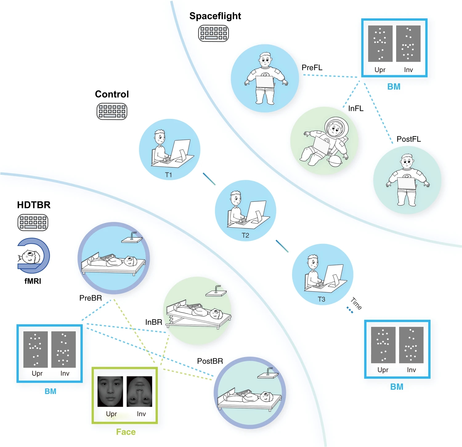 To what extent has Earth’s gravity shaped our cognitive and brain functions? Utilizing spaceflight and a ground-based analog, a new study shows that the human brain relies on bodily gravitational signals transmitted from the vestibular cortex to sustain its selective sensitivity to visual biological motion (BM).