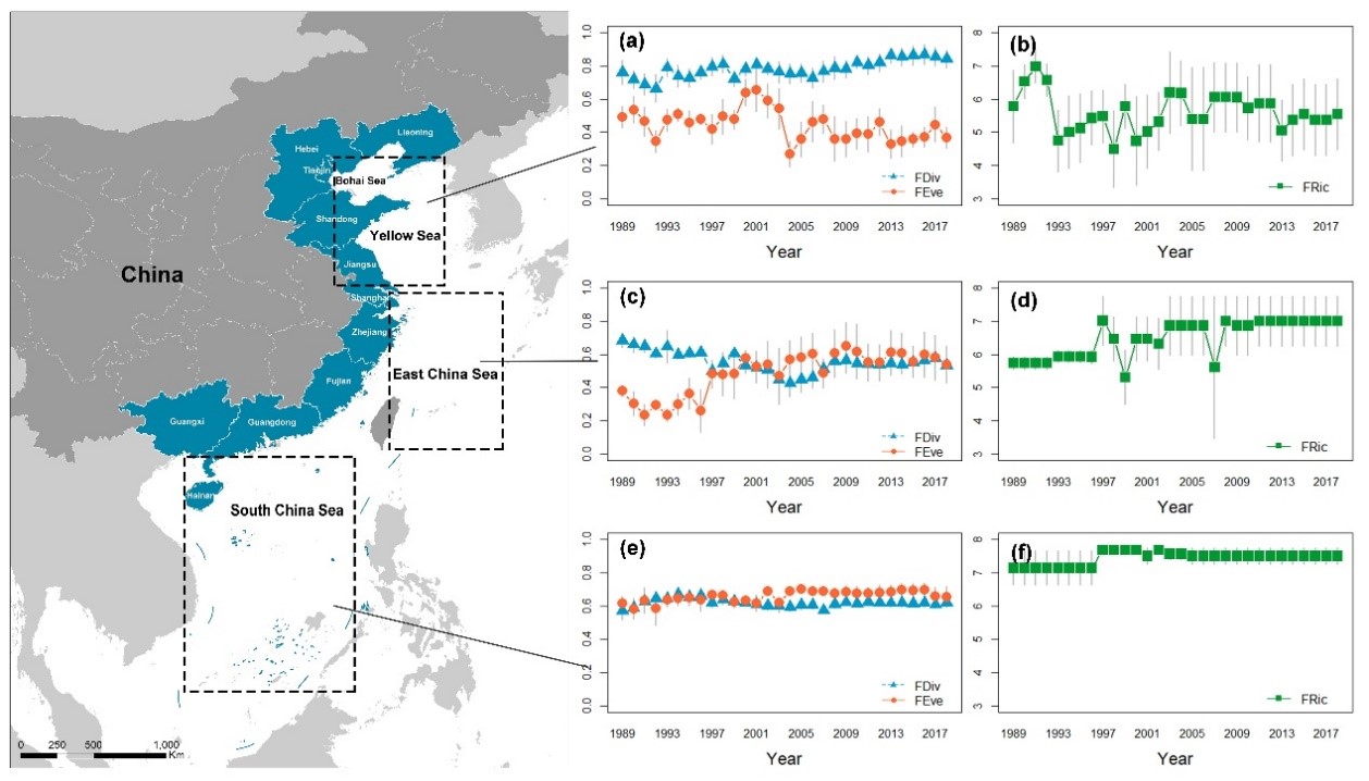 Trends of functional diversity for the China seas over the past 30 years. (Image by IHB)