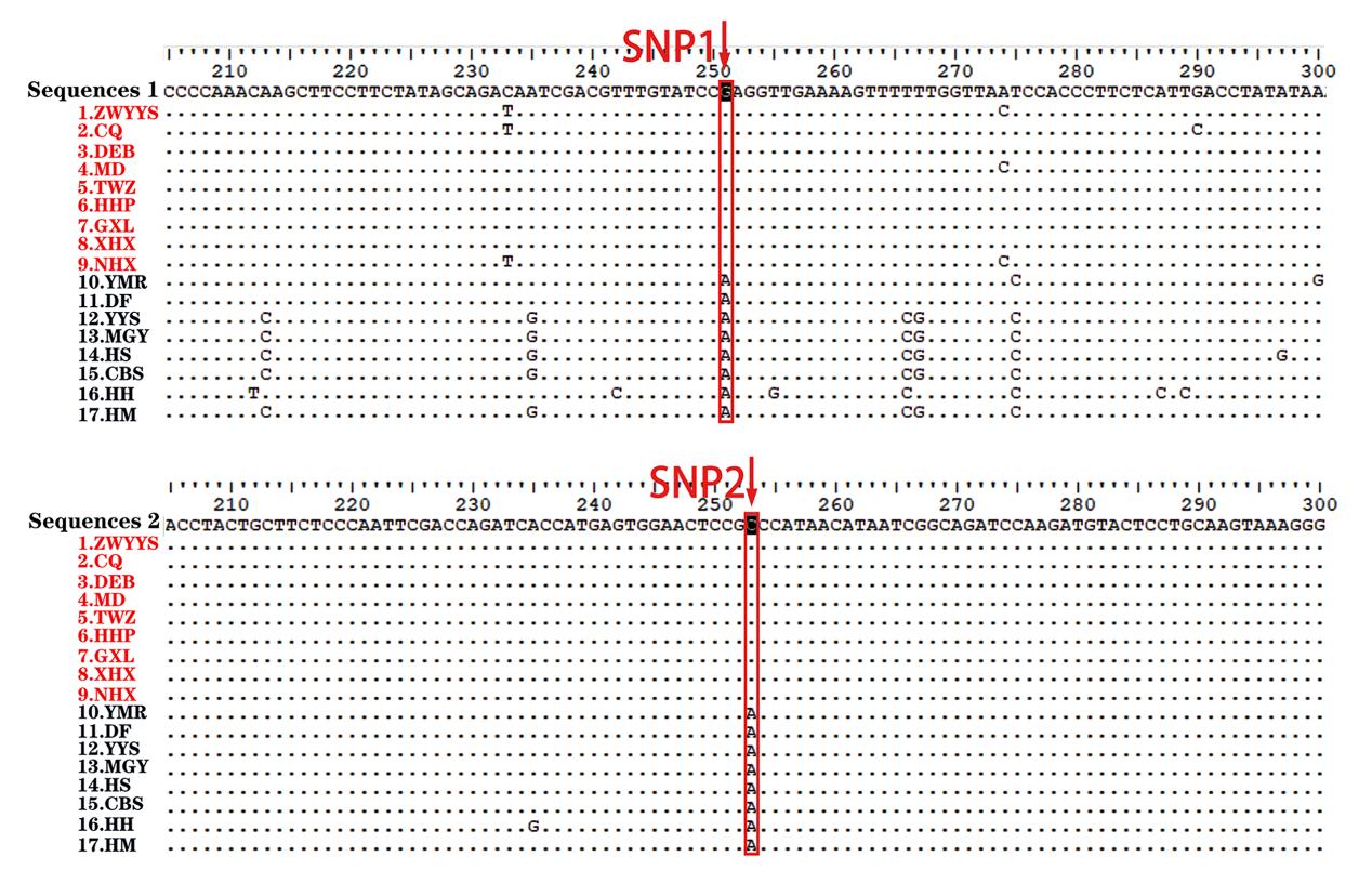 In addition, two opium poppy-specific single nucleotide polymorphism (SNP) loci were developed for the first time by simplified gene sequencing technology, which could accurately identify the opium poppy and its related species.