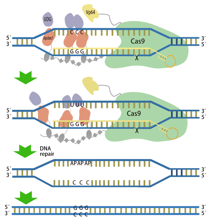 The glycosylase base editor (GBE) could edit C to G in mammalian cells. However, the application of GBE was constrained by relatively low efficiency and targeting scope. More excellent strategies were expected to increase the efficiency and targeting scope for wider application of GBE in treatment of genomic disease.
