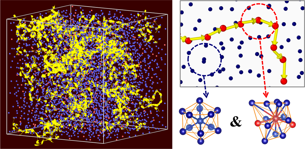 Visualization of Liquid-like atoms in Al90La10 MG at 300K by MD simulations. (Image by Institute of Physics)