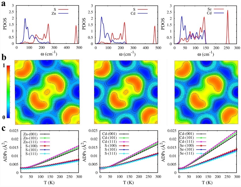 After calculating and analyzing the phonon properties, they concluded that all three pyrite-type dichalcogenides had localized high-frequency optical phonons contributed by their strongly covalently bound nonmetallic dimers and soft phonon modes contributed by their rattling like metal atoms, which resulted in their strong anharmonicities and low thermal conductivities.