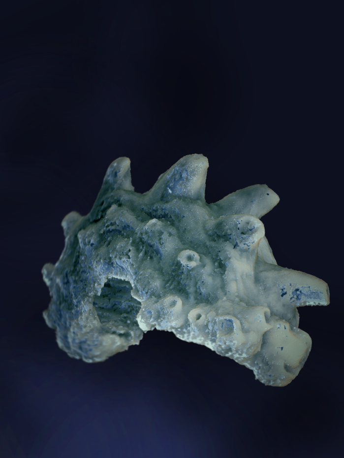 The tooth spirals (or whorls) of Qianodus turned out to be one of the least common fossils recovered from the site. They are small elements that rarely reach 2.5 mm and as such had to be studied under magnification with visible light and X-ray radiation.