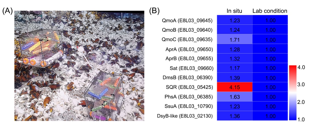 The researchers placed and cultured this bacterium back to the deep-sea cold seep during the cruise of R/V KEXUE in 2020. When O. marinus CS1 was cultured for 10 days in a deep-sea cold seep, the expressions of PhsA and SQR were significantly upregulated, indicating that strain CS1 might form ZVS in the deep-sea environment.