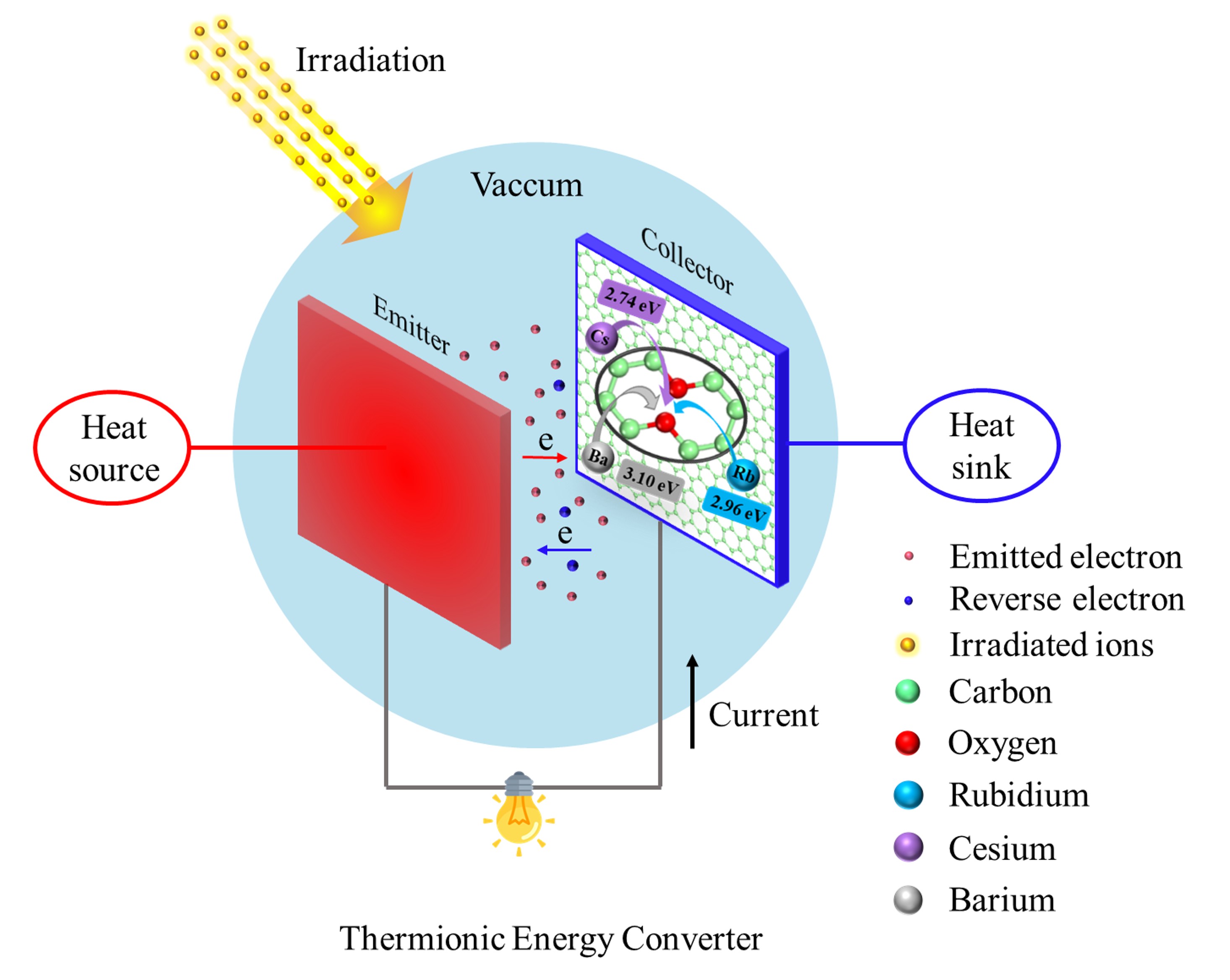 After studying the effects of irradiation defects on the work function of graphene electrodes in thermionic energy converters (TECs), a research team found that the generation of defects in graphene through irradiation would increase the work function and reduce the electron emission capacity. This results in reduced power output and conversion efficiency of TECs.