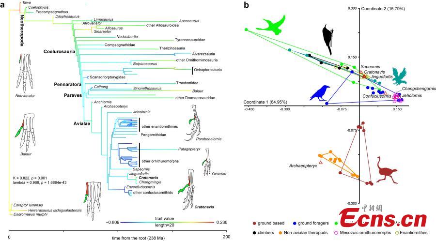 Type specimen of Cratonavis zhui. (Photo provided to China News Service)