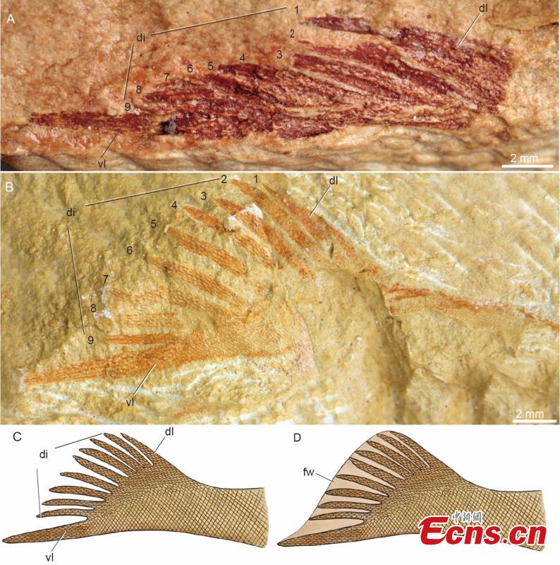 Photo shows an exceptionally preserved fossil of "nine tails". (Photo provided to China News Service)