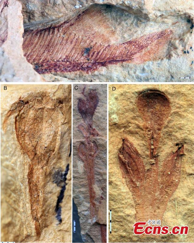Photo shows the exceptionally preserved fossils of fishes and plants associated with Foxaspis. (Photo provided to China News Service)