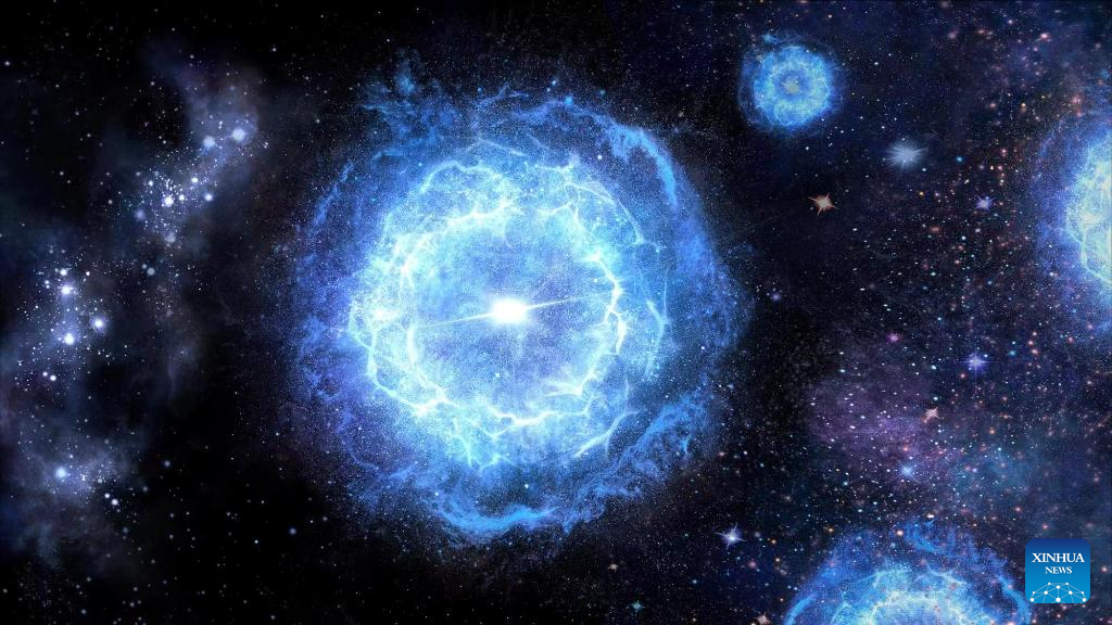 This image provided by the National Astronomical Observatories of China (NAOC) shows the first generation stars end up as a special type of supernovae, called pair-instability supernovae (PISN). (NAOC/Handout via Xinhua)