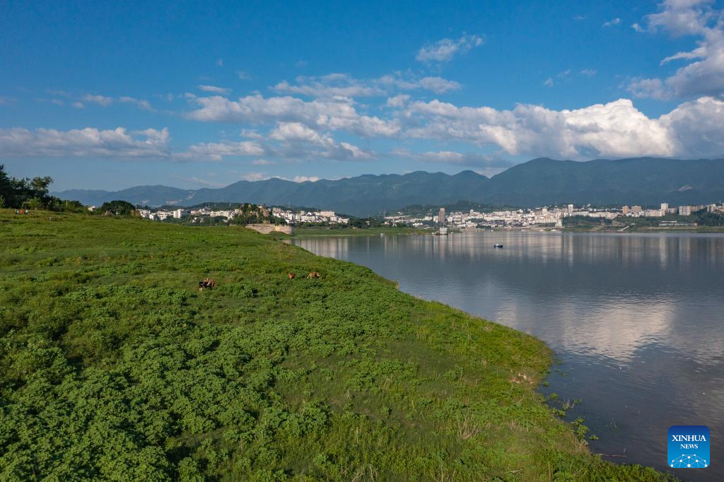 This aerial photo taken on July 5, 2023 shows an area of the Three Gorges Reservoir in Zhongxian County, southwest China's Chongqing. (Xinhua/Huang Wei)