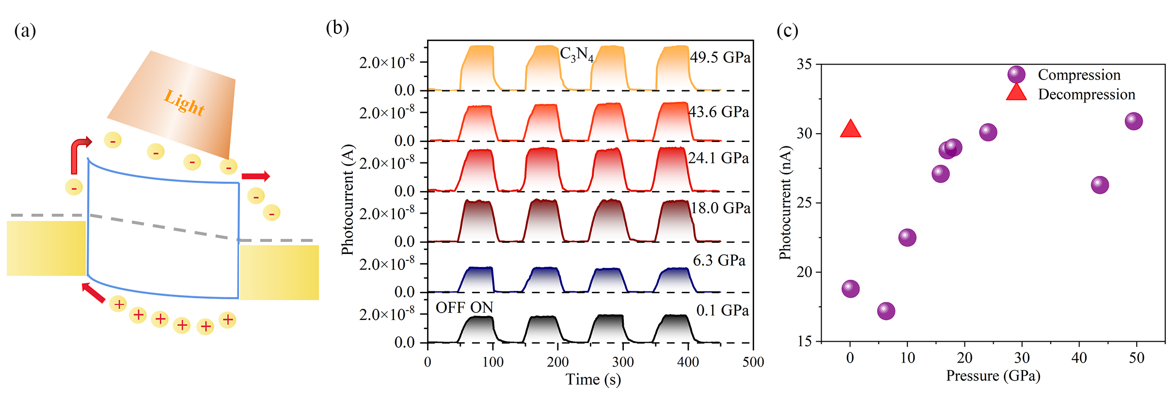 Later, a series of investigations were carried out on the band gap evolution and photoelectric response behavior of g-C3N4 under high pressure. They used a diamond anvil cell combined with Raman spectroscopy, synchrotron X-ray diffraction, high-pressure absorption spectroscopy, and photocurrent measurement techniques.