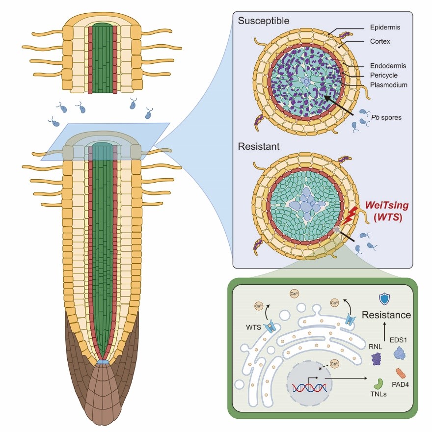 WTS encodes an ER-localized Ca2+ release channel, triggering immune response to protect stele from P. brassicae invasion. (Image by CHENG Hangyuan)