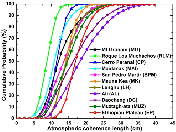 Cumulative probability of atmospheric coherence length at astronomical sites. (Image by QING Chun)