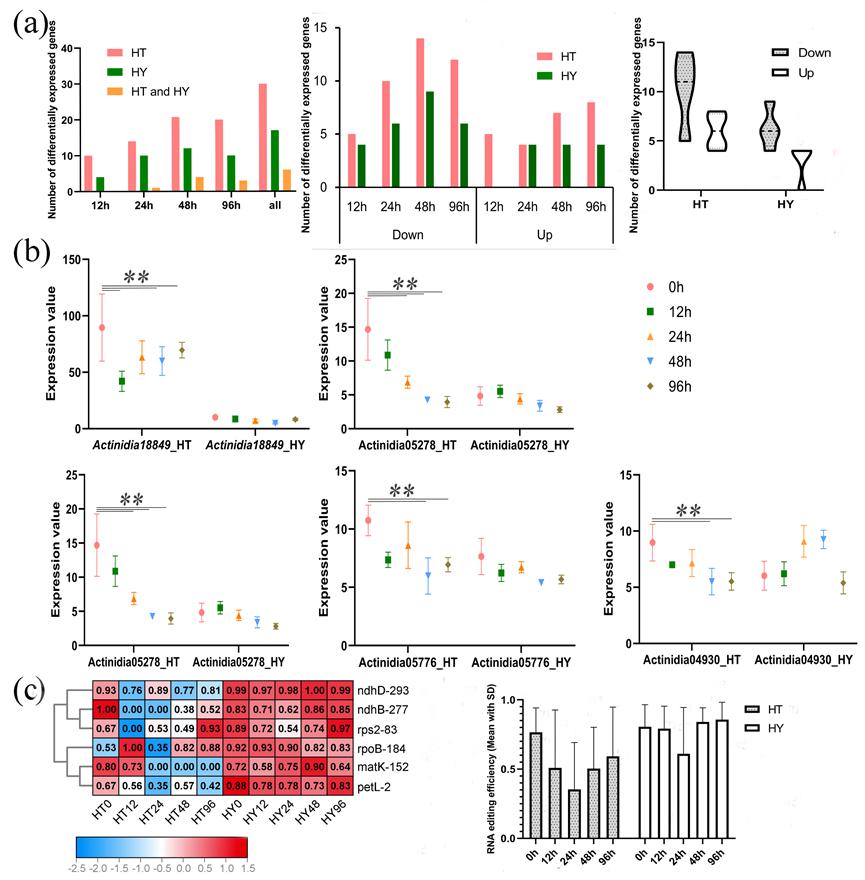 Different responses of PPRs expression and RNA editing to Psa infection in Actinidia chinensis (HY) and Actinidia eriantha (HT) (Image by WBG)