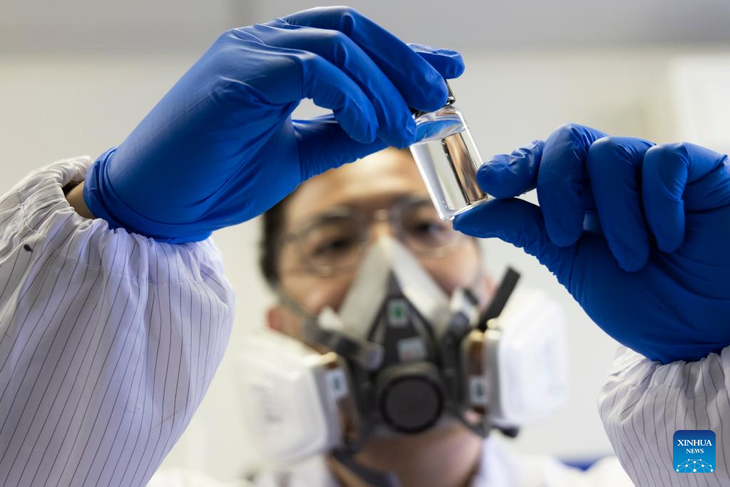 Researchers perform an experiment at a laboratory in the Shanghai Institute of Optics and Fine Mechanics, Chinese Academy of Sciences in east China's Shanghai, Feb. 29, 2024. (Xinhua/Jin Liwang)