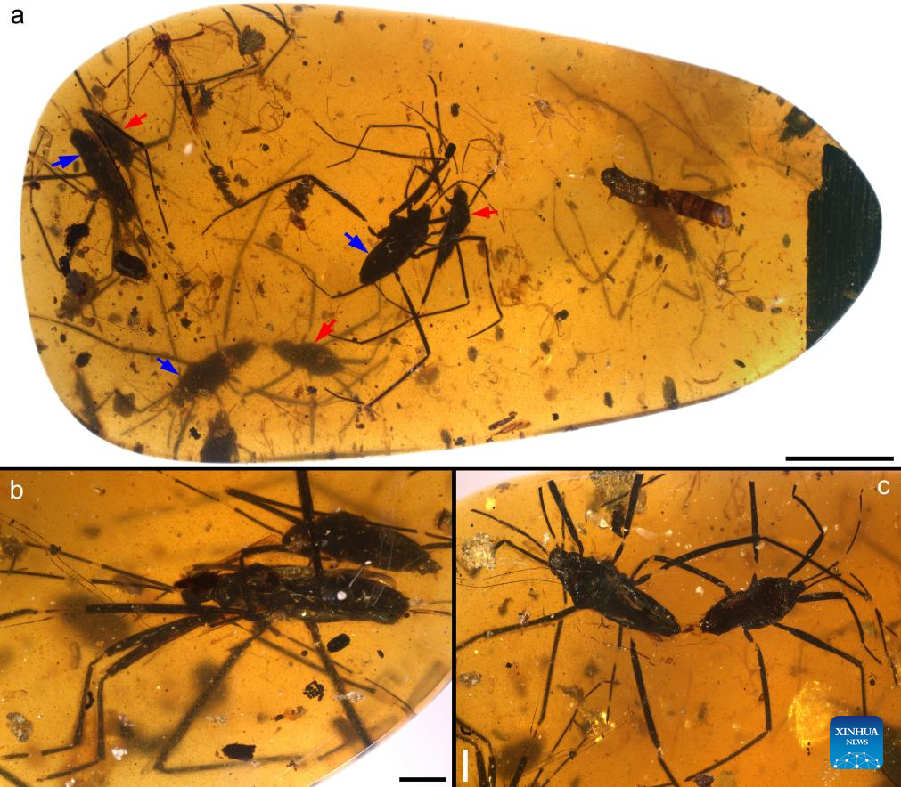 Chinese researchers have revealed the mating behavior and potential sexual conflicts of the insects through the first fossil record of Cretaceous water striders in copulation from northern Myanmar, which dated back to the mid-Cretaceous some 100 million years ago.