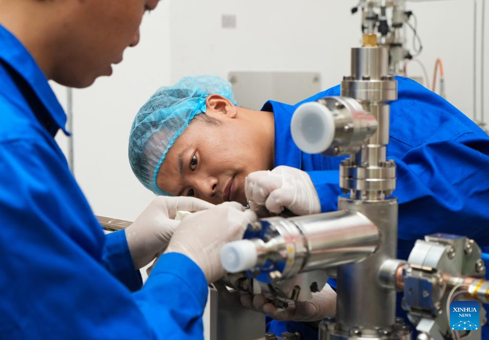 Staff members work at the High Energy Photon Source (HEPS) in Beijing, capital of China, June 30, 2024. Upon the completion of the vacuum circuit of its storage ring, the HEPS has entered the joint test stage on Monday. The HEPS is a major science infrastructure project built by the Institute of High Energy Physics under the Chinese Academy of Sciences. (Xinhua/Jin Liwang)