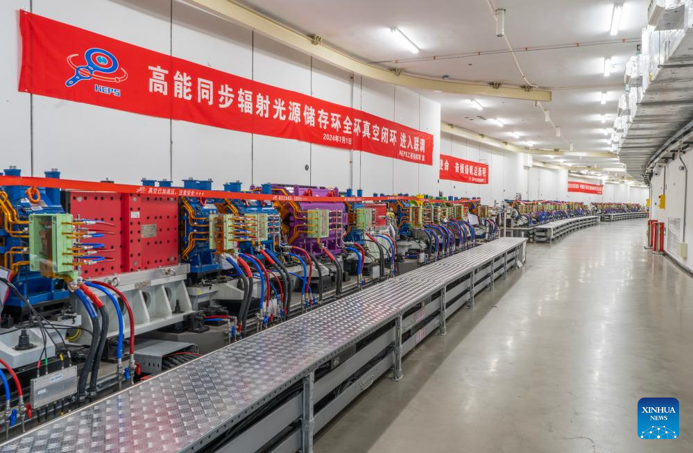 This photo taken on June 30, 2024 shows the storage ring of the High Energy Photon Source (HEPS) in Beijing, capital of China. Upon the completion of the vacuum circuit of its storage ring, the HEPS has entered the joint test stage on Monday. The HEPS is a major science infrastructure project built by the Institute of High Energy Physics under the Chinese Academy of Sciences. (Xinhua/Jin Liwang)