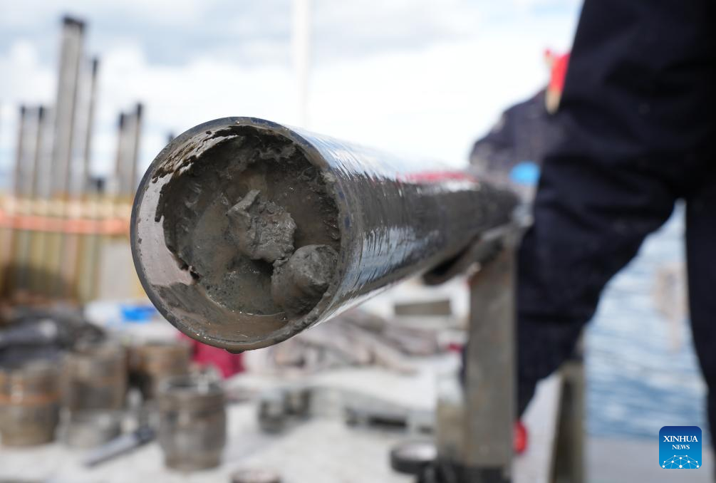 This photo taken on July 12, 2024 shows the samples collected from the lake core of 402.2 meters on Nam Co, in southwest China's Xizang Autonomous Region. (Xinhua/Jigme Dorje)