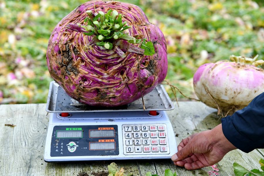 In August, they harvested the "king of turnips" in Quxu County of the city of Lhasa, which is the largest known turnip in decades, weighing 12.04 kilograms. Despite the challenging environment of Nagqu, the biggest single turnip grown there weighed an impressive 4.8 kilograms.